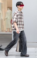 ダークトーンのチェックは大人も取り入れやすい。手にしていた紙...