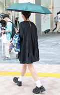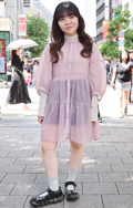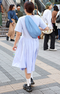 涼やかな水色のワンピースに白ソックスで清潔感を出したスタイル...