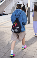 あいみょんのグッズのナップサックを背負った男性。カラフルなス...