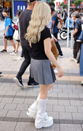 K-POP文脈から一台トレンドとなったグレーのプリーツスカー...
