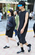 スニーカーとソックスのブランドを揃えたコーディネートも多かっ...