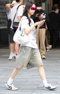 渋谷では今期大ヒット中のひざ下丈のバギーショーツ+ミドル丈ソ...