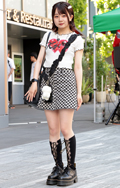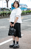 ボブヘアにスカートのようにも見えるワイドなショートパンツで中...