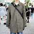 A チェックのシャツはデザイン、サイズ感、価格で選びました。ブランドは気にしていなくて、買ってからL.L.Bean(エルエルビーン)だとわかりました。もともとチェックが好き。学校でもチェックで課題を作ったりしています。チェックの柄は気にせず、緑、紫など色メインで選んでいます。チェックだとシンプルにならないので1個でもキマリます。コーデは雨用のスニーカーから決めました。パンツはいつもこの合わせ方で、昨日気温が21度で上着があるといいなと思ったので羽織りものとして選びました。他のシャツなどは考えていませんでした。