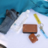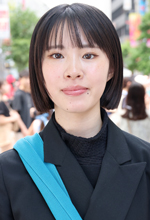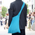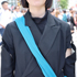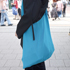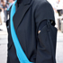 このバッグは斜めがけで発色がいいところが好きです。派手なものが欲しかったのでちょうどよくて。緑と迷ったけど、他のバッグで似たようなものがあるから青にしました。ずっと黒が好きだから、小物は派手めなものが良くて。今日は面接だったからフォーマルな服装です。でも意外とラフな雰囲気の会社だったからバッグで印象付けようと思いました。靴下はメリハリをつけるために白をチョイス。