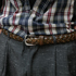 A このスラックスを買ったのは、かすり柄とよばれる70年代のものを見つけて試着してみたらシルエットとサイズがよかったから。グレーだと他のアイテムとも合わせやすいです。大人っぽさ、上品さが出るので。他にグレーはコーデュロイも持っています。パンツは手持ちが多くて幅広く持っています。 コーデを組むとき、パンツは最後に決めます。チェックのパーカーとカーディガンはチャラさやカジュアルさがあるから、グレーのスラックスで引き締めるイメージで調整しています。プリズナーパンツと悩みましたが、今日の気分はグレーだったのでこちらにしました。