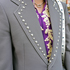 A ジャケットは成人式で使うので買いました。ミケーレのデザインが好きです。中学生の時からGUCCIのセットアップを着るって両親にも言っていました。グレーだから派手じゃないけどスタッズが輝いているところが気に入りました。グレーは差し色がしやすいです。アスファルトの色だから、何でも合うので楽しいです。