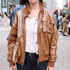 今日は寒くも暑くもなくてちょうどいいですが、中のピンクだけだと寒いのでこのジャケットを選びました。オーディションがあったので一番イケてるお気に入りのこのアウターにしました。水色もあったけどどこにもない個性的な茶色で人とは違うので買いました。音楽が好きでビヨンセも好きです。このジャケットもアディダスとビヨンセのコラボです。