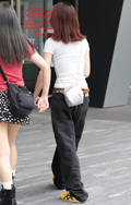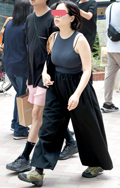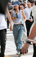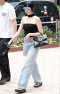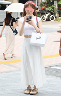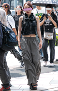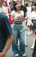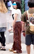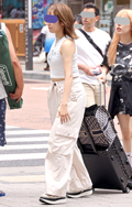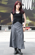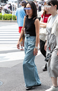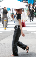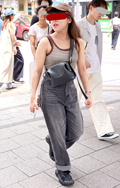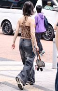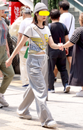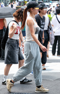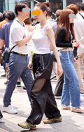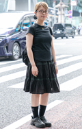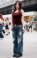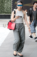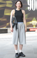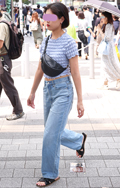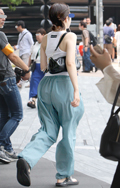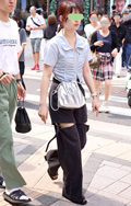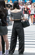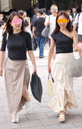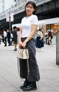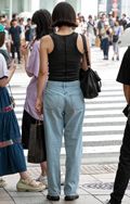 バストやミドリフ・胴回りが身体にフィットしたシルエットのトップスを着用している女性すべて。トップスの色や素材、デザインは問わない。