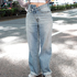 このデニムパンツは足が細く見えてカジュアルでカッコよくてオシャレな感じが好き。MOUSSY(マウジー)の品質とデザインがよくて、よく買っています。トップスはセクシーなものや短いものを合わせています。BLACKPINKのジェニーが好き。女性らしすぎるのは好きじゃなく、ジェニーっぽく着こなします。自分の体型にいちばん似合うのでストレートのデニムが多いです。他にはヴィンテージっぽいものと、似たようなものをいっぱい持っています。今日は1人なので、ラフで着心地がいい格好がしたかったんです。そんなときに使いやすいです。