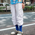 靴下を見せているのは、普通のスウェットを7分丈にしているだけだと物足りなくて。今日は暑いし、一番最初にTシャツを決めました。貰いたてで嬉しくて。Tシャツが青だから靴下も青にしました。あと青ソックスはサッカー選手っぽいからスパイクっぽいデザインの靴を選びました。斜めがけバッグは父にもう使ってないからあげると言われました。斜めがけバッグを探していると言ったらPRADA(プラダ)のがあるかもと家の倉庫に眠っているものを出してくれました。探していた理由はリュックも好きだけどリュックだと背中が暑いので汗かいちゃうから。トートとかでないのは両手は死守したいから。