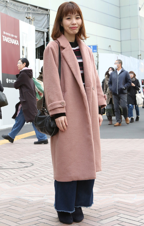 インディゴ〜色落ちデニムまでブルー系のデニムのパンツを履いている女性すべて。デザインや柄、なんらかの異素材が組み合わせられている場合も含む。