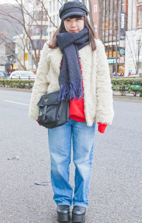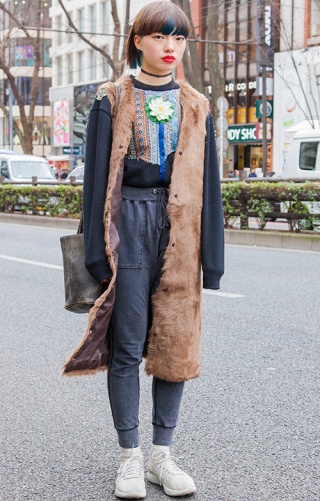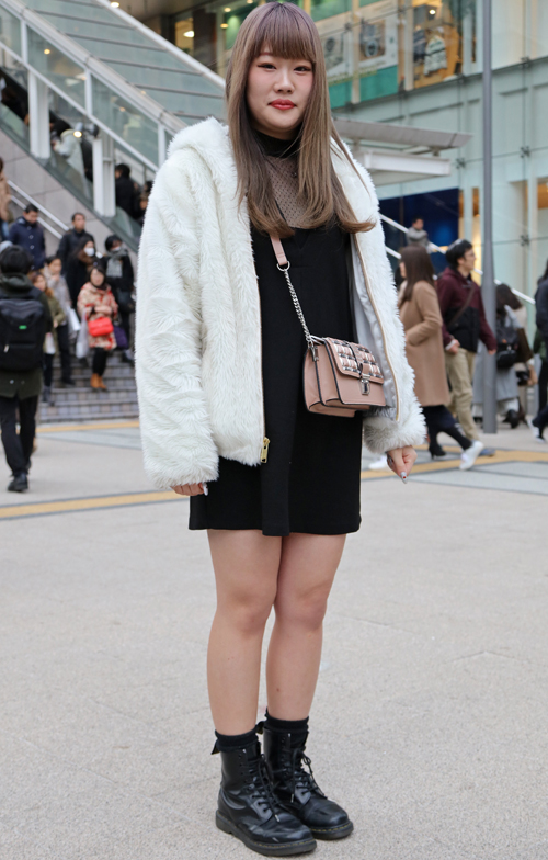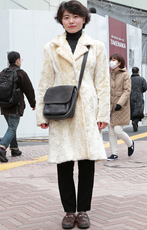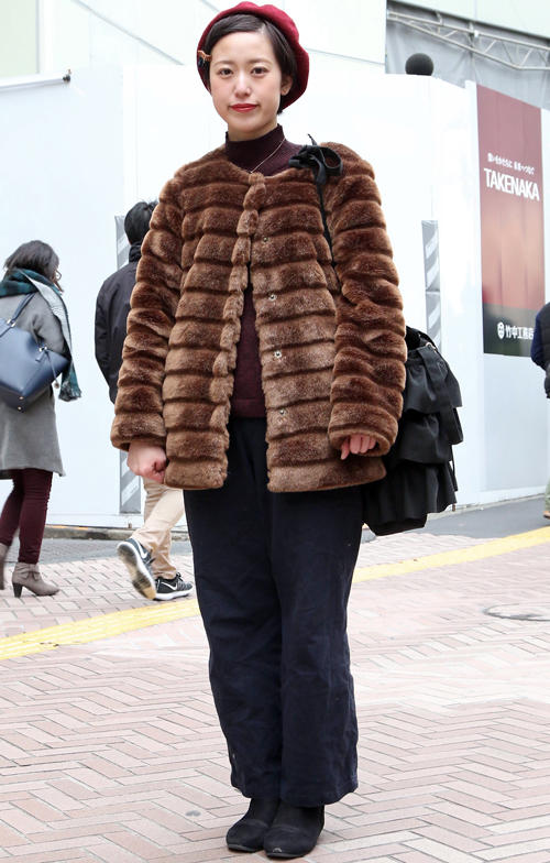 一番上に、ファーやもふもふ素材のコートやブルゾンを着用している女性。