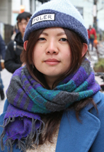 この柄が珍しくてかわいい。カチッとしたイメージで個性的だし、古着っぽいイメージで着ています。ニットが無地だから、目立つこのスカートを選びました。このスカートでコーディネートするとき、上は無地にするようにしています。去年は水玉や花柄をよくはいていました。でも今年はまだはいていません。ワンポイントや柄物が好きです。