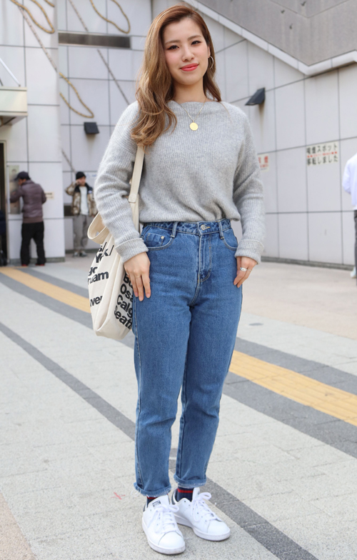 インディゴ〜色落ちデニムまで、ブルー系のデニムパンツを履いている女性すべて。柄などが施されているものは除く。