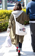 人混みのなかでもひと際目を引く真っ赤なトートバッグはアンリア...