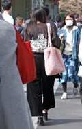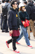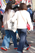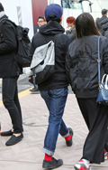 まだまだ寒いなかでも、ティーンズはナマ脚でミニスカートを着用...