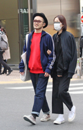 差し色としては定番の赤がやはり一番人気。こちらはジャージに赤...
