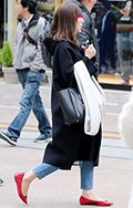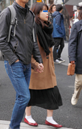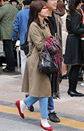 この日の渋谷で目についたのがエナメルの赤いフラットシューズ。...