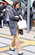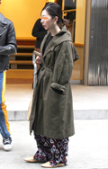 フラットシューズがボリュームのあるコーディネートを軽快に見せ...