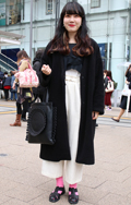 ボリュームのあるコーディネートに白のフラットシューズでヌケ感...