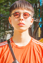 A サングラスはBLYSZAK(ブライザック)のもの。オールメタルでモードなスタイルに合うと思ったから、このサングラスを選びました。