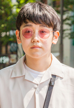 前まではスキニーデニムみたいなストリート系のファッションにゴツい黒のサングラスを合わせていたけれど、最近はファッションの系統を変えて、スラックスみたいなきれいめなコーディネートをするようになったんです。きれいめなコーディネートのハズシにカラーサングラスをかけてみました。