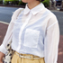 一見シンプルな白シャツだが、よく見るとオープンカラ—+ベルス...