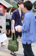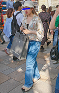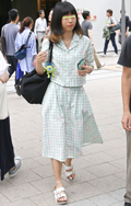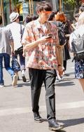 昨年男性に人気だった柄の開襟シャツが、今年は女性にも着用され...