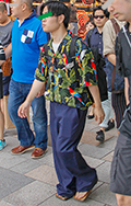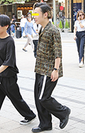 男性は黒のスラックスと合わせるケースが目立つ柄シャツだが、女...
