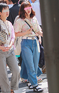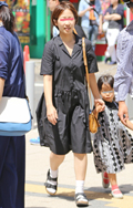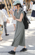 女性にはオープンカラーのワンピースが多く見られた。襟の詰まっ...