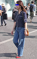 女性の開襟シャツというと昨年夏は無地のものが主流だったが、今...