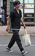 開襟シャツの前を開けて羽織るスタイルも多い。昨年に比べるとア...