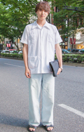 開襟シャツは箱型のボクシーシルエットで丈が短いタイプが人気。...