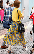 トレンドカラーのイエローのロングスカート。脱ノームコアが進む...