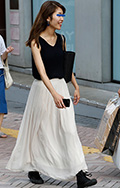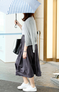 布量が多いロングスカートはコンパクトなショート丈トップスとも...