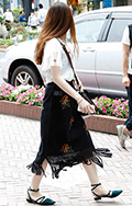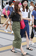 ロングタイトスカートも増加していた。スニーカーではなくフラッ...