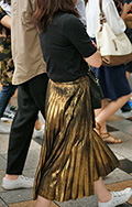 一部で浮上していたメタリックなプリーツスカート。柔らかく軽い...
