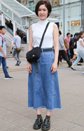 デニム素材のスカートも一定数見受けられた。こちらはデニム使い...