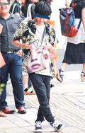 海外からの観光客も目立った渋谷地点。ポシェットのようにみえた...