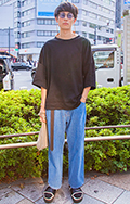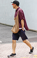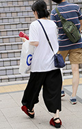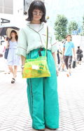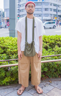サコッシュではなく、薄手素材のトートバッグを斜め掛けにしたラ...