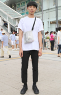 盛夏になり、シンプルな白T×スキニーボトムスのスタイルが増え...