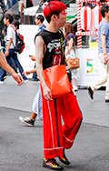 ファッションに合わせた真っ赤のヘアカラーで目立っていた彼。ヘ...