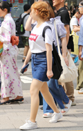 インタビューでは、夏休みの間だけヘアカラーを楽しむという学生...