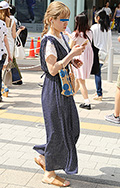 ワンピースやフラットサンダルなどリラックスした着こなしが多か...