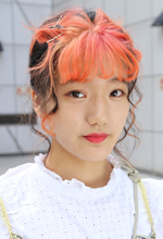 この和柄は花火に行く予定だから、「和」をイメージして選びました。お店で見た瞬間ビビっときて欲しくなりました。いつも服は着たいものを着るようにしています。今日は白のトップスと重ね着だけれど、キャミソールだけで着ることもあります。髪の毛はベリー系のマニキュアでセルフで染めました。夏だから染めたくなって、太陽の色みたいなこのオレンジにしました。前は黒だったけれど、染めたくなる波がときどききて、今回のもその波がきたから染めました。あまりどんな風に見せたいとか理由はなく、染めたいから染めました。