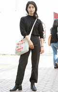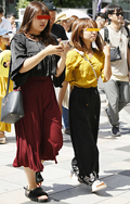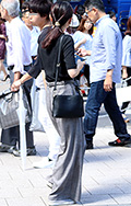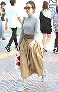 トップスをボトムスの中に入れている女性すべて。デザインや色、素材は問わない。ボトムスのデザインや色、素材も問わない。上にアウターを重ねている場合も、インしたウエスト部分が見えている場合は含む。ワンピースは含まない。