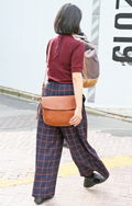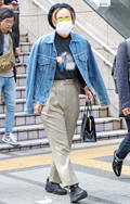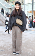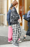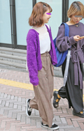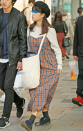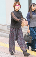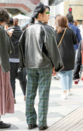 人気継続の太パンツでもチェック柄が急増していた。柄ものだが上...