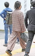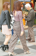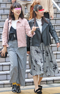 グレー調のグレンチェック柄ボトムスを着用していた2人。右側の...