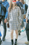 グレンチェック柄のデザインシャツをワンピース風に着こなした少...